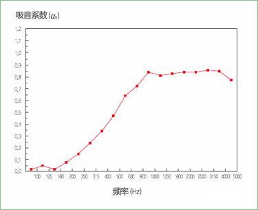 NRC(Noise Reduction Coefficient) : 1/3倍频带的中心频率250Hz, 500Hz, 1000Hz, 2000Hz下的吸音率的平均值| 频率(Hz) | 吸音系数(αS) |