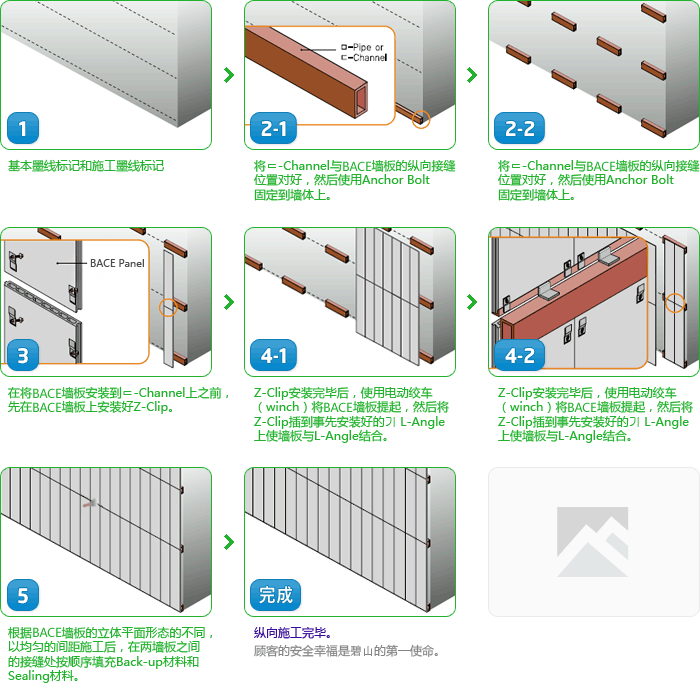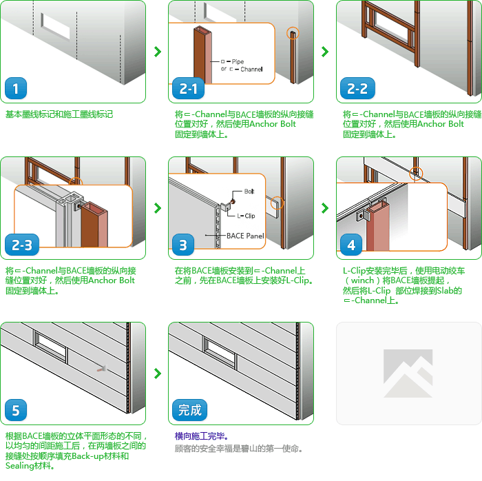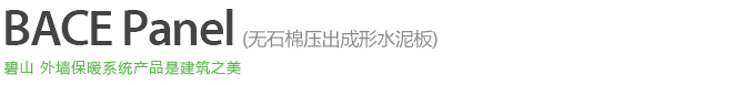 BACE 是 Byucksan Autoclaved Cement Extrusion的缩写,是以水泥为主原料压缩成型后,在高温(180℃)、高压(10 大气压)下使用蒸汽养护而制成的产品,重量轻,强度高,是一种外观漂亮大方的组合式外墙板。