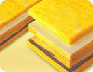 消音/隔热产品 : 为了降低音响设施,电影院,体育馆,空调室等的噪音而研制生产的产品,玻璃棉隔热板的一面贴有玻璃外套。