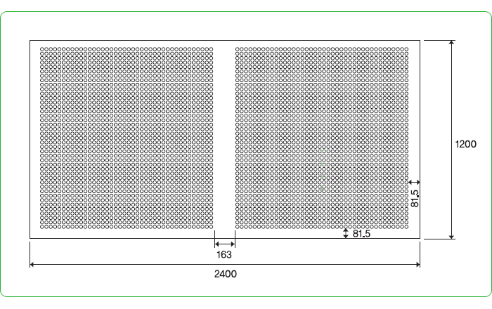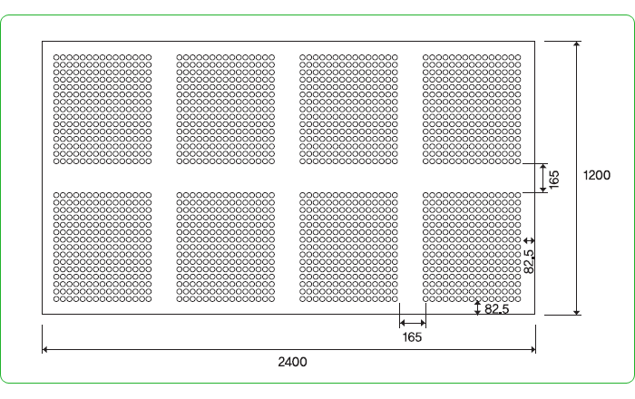 | 产品规格(mm) | 12X1200X2400 | 孔分布图 | 8@22X22 |