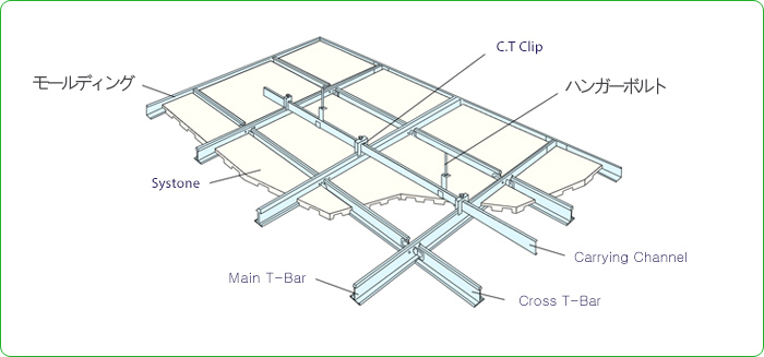Systoneは密度が 500kg/㎥以下である為、他の天井材より軽いです。従って、運搬や取り扱いが容易で建物の自体荷重を減らすことが出来ます