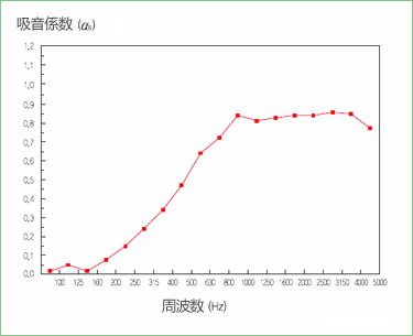 カタログに記載された吸音性に関するDATAは、提示された条件の下での性能測定結果で、環境条件により変化することがあります。