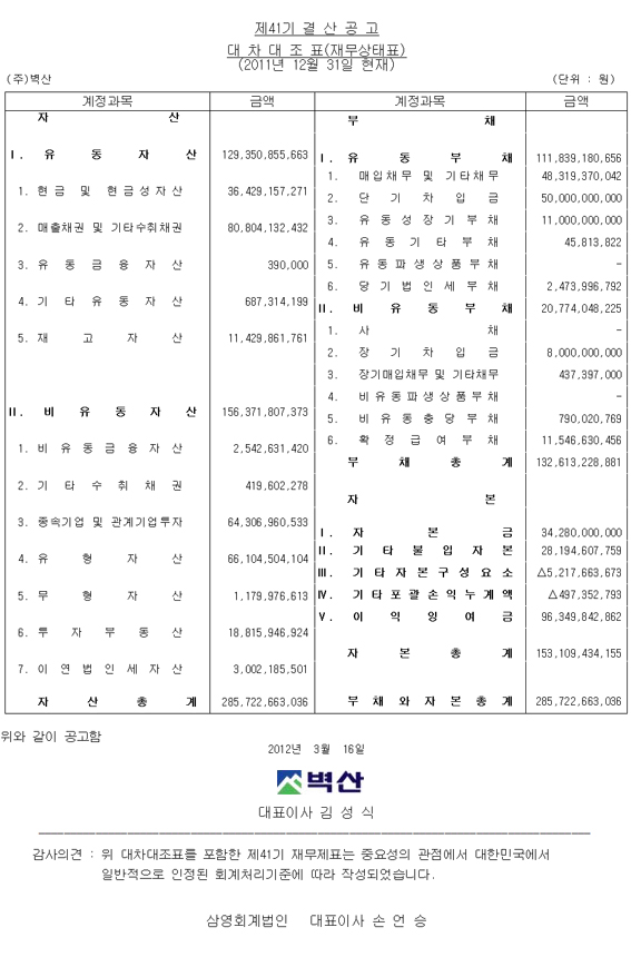 제41기 결산공고.