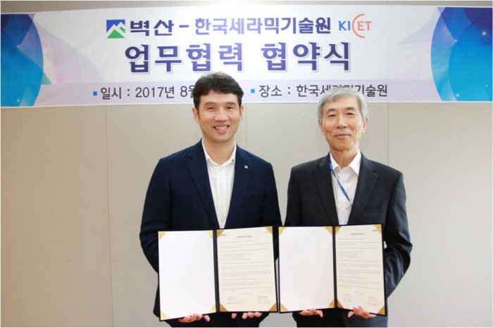 이번 협약식은 한국세라믹기술원 본원에서 김성식 벽산 대표이사와 강석중 한국세라믹기술원장 등이 참석한 가운데 진행됐다.